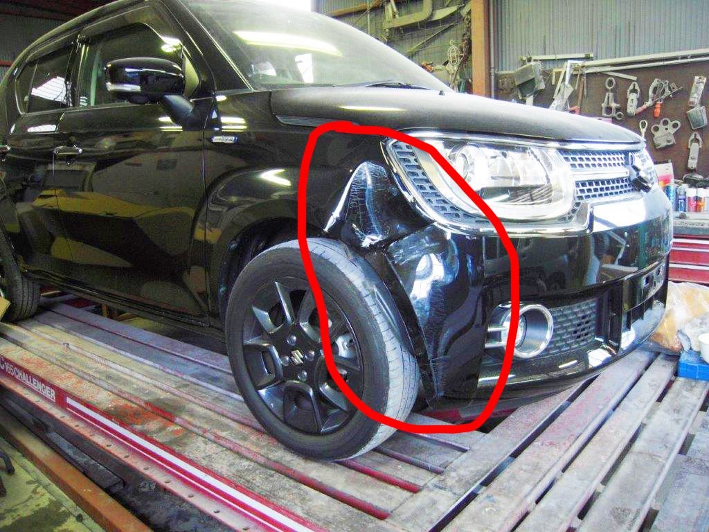 スズキ イグニス ブラックメタリック バンパー、フェンダー交換塗装 修理